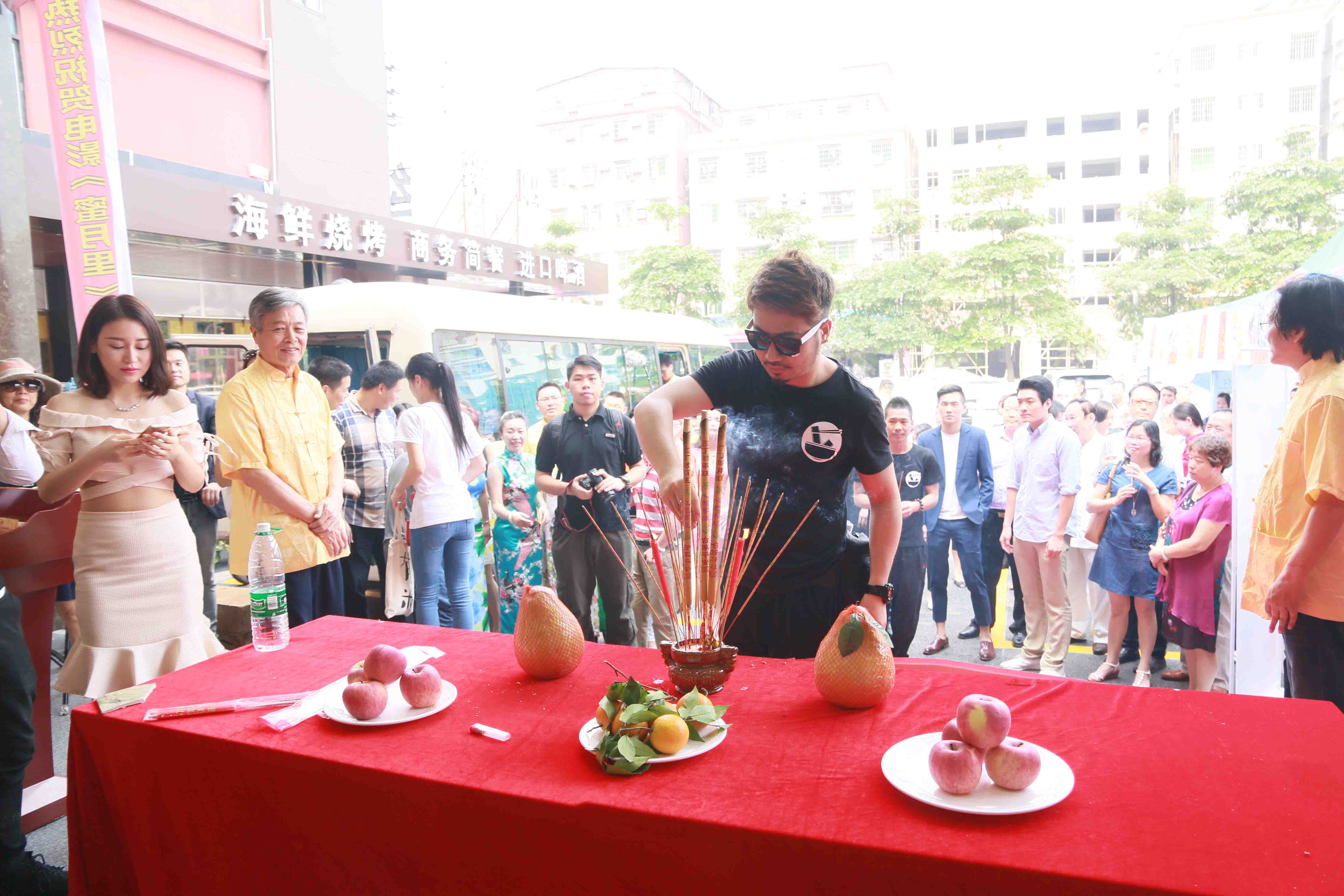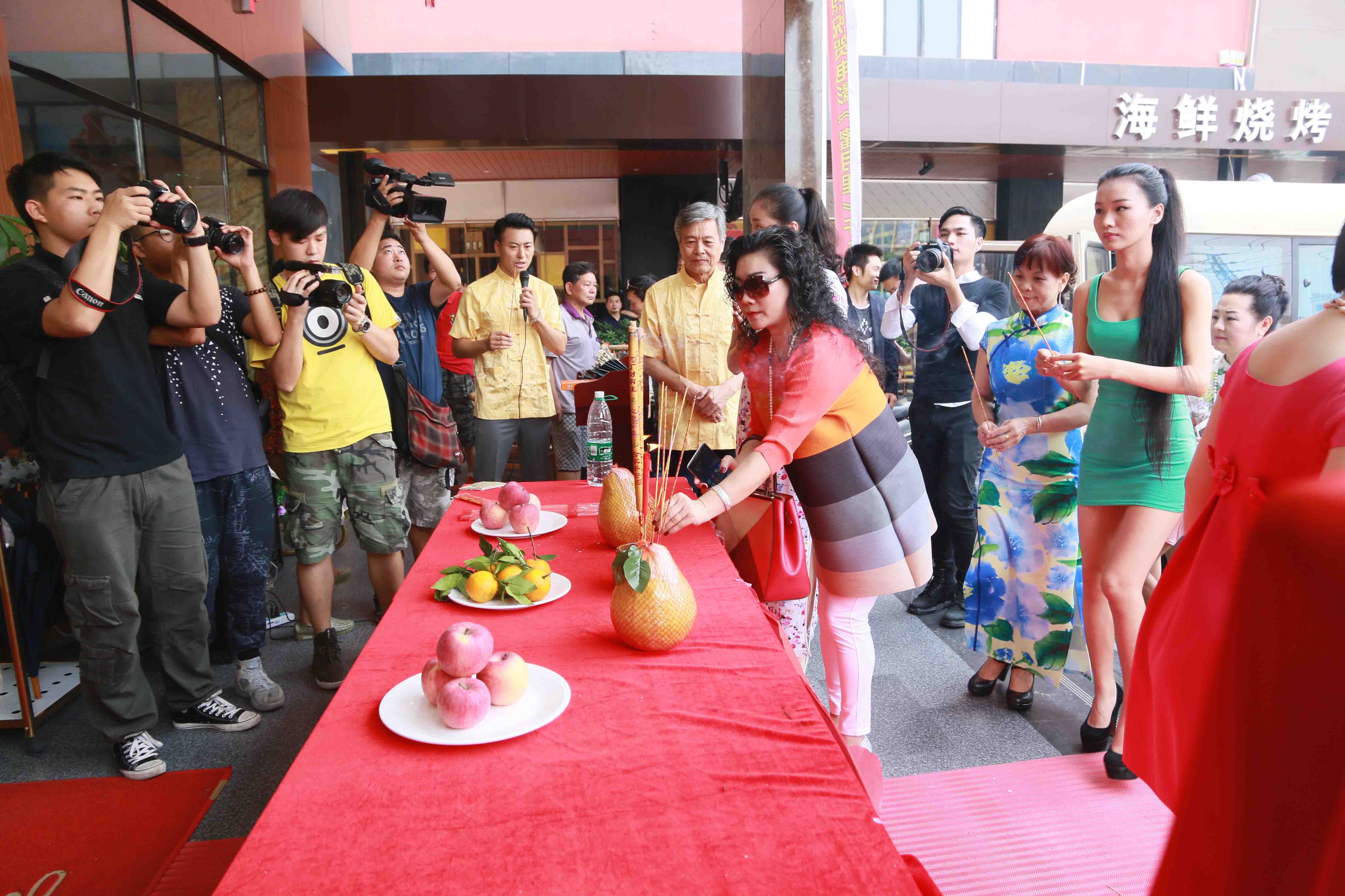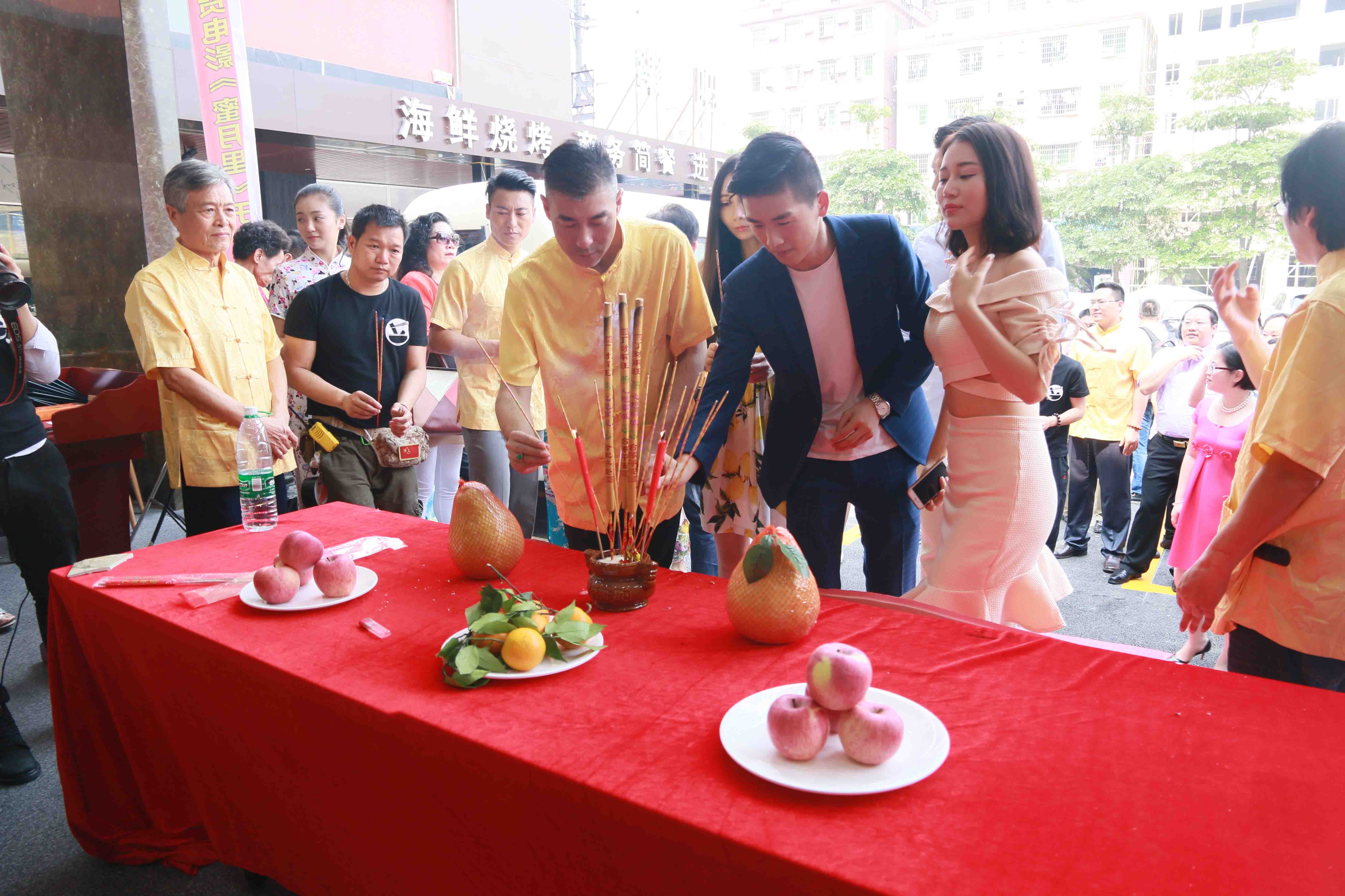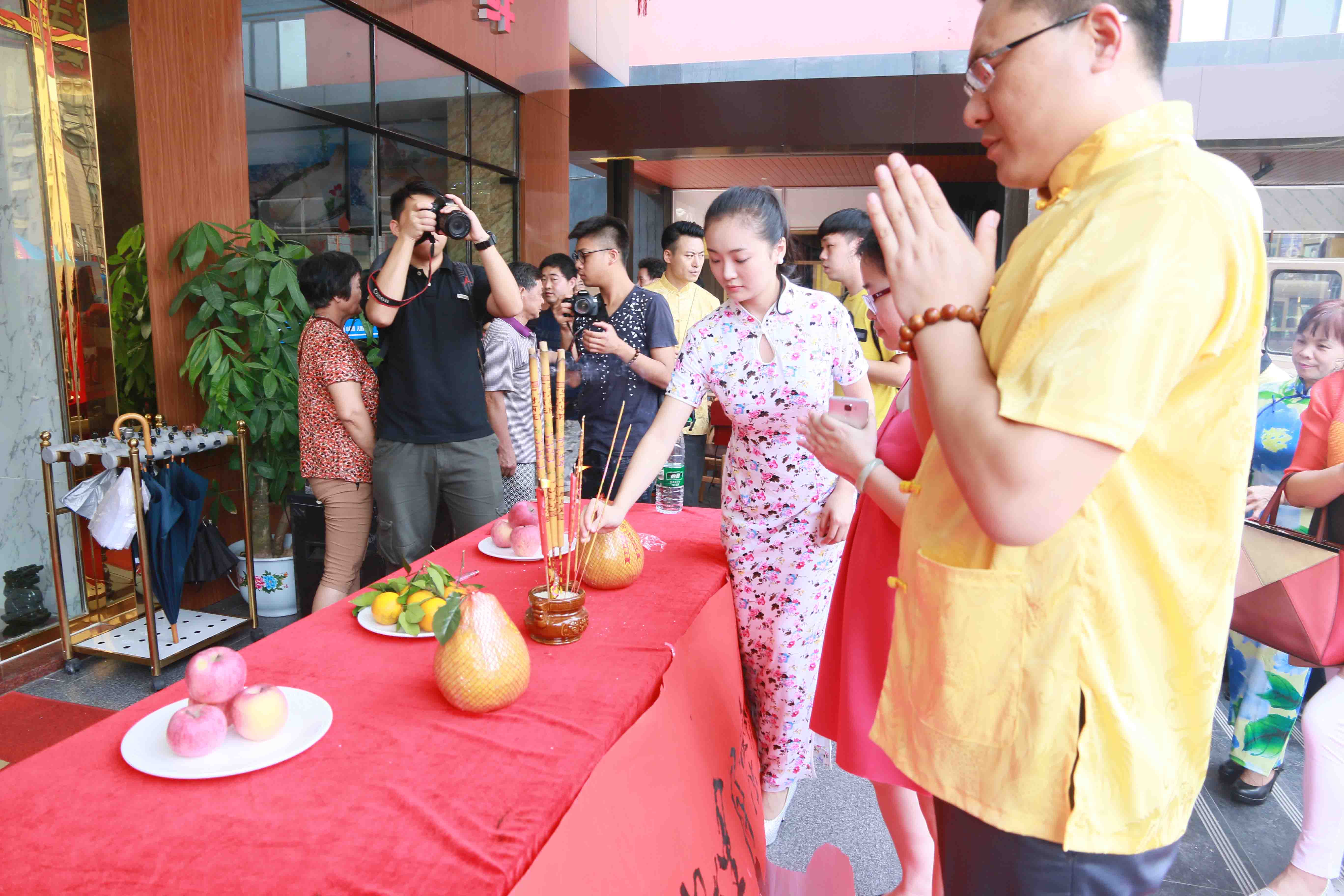 开机仪式上各位剧组组成成员在为开机祈福。