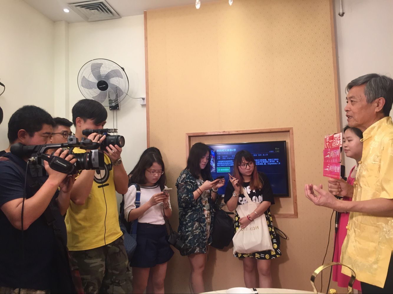 开机仪式后媒体采访了出品人——叶熙尧(粉衣)和